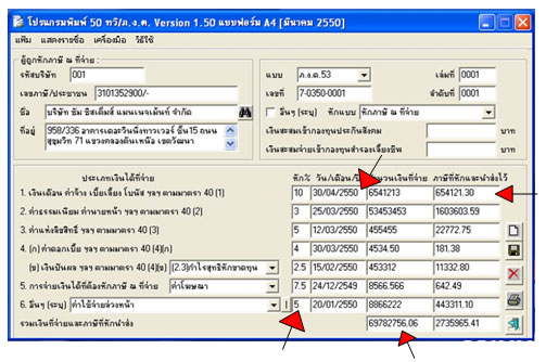 วันที่หักภาษี ในช่อง วัน/เดือน/ปี ถ้าไม่กำหนด ในโปรแกรมจะถือเอาวันที่ปัจจุบัน เป็นตัวตั้ง